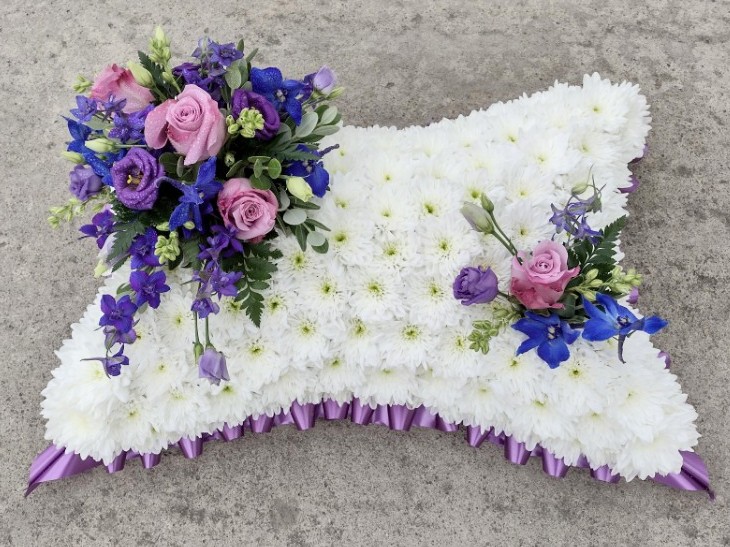 We don’t strictly have a brochure of set designs to choose from as each funeral piece is made especially for each individual funeral. However, funeral designs can absolutely be tailored to include favourite colours and flowers wherever possible. Or, simply leave the choice to us and we will create something beautiful. As guidance, the photos below show possible shapes and designs.